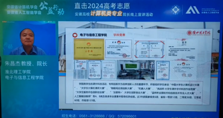 安徽省计算机学会、安徽省人工智能学会联合省内31所高校计算机学院,针对2024安徽新高考综合改革,开展了一场公益性专业招生线上宣讲活动,直播观看达4万+人次。6月27日下午17:30—18:00,永利官网yl7703永利官网院长朱昌杰宣讲永利官网计算机科学与技术、人工智能、数据科学与大数据技术、软件工程、电子信息工程、通信工程等专业招生情况。